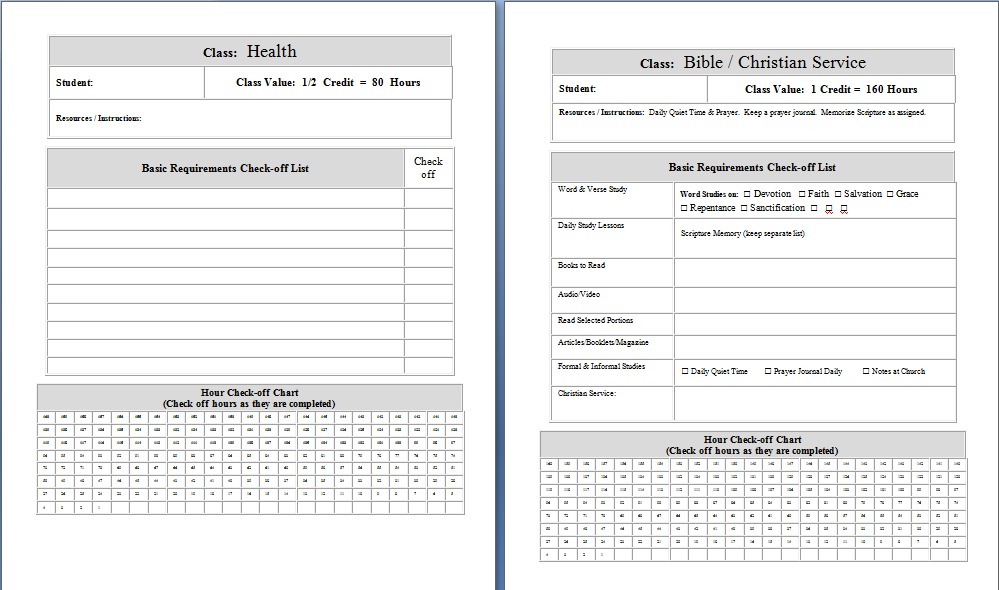 Another helpful thing I did for our homeschool was to plan ahead of each school year using a form that listed each subject’s requirements for the year. This form listed what I expected them to complete during the year and what they needed to do in order to earn an A, B, or C.