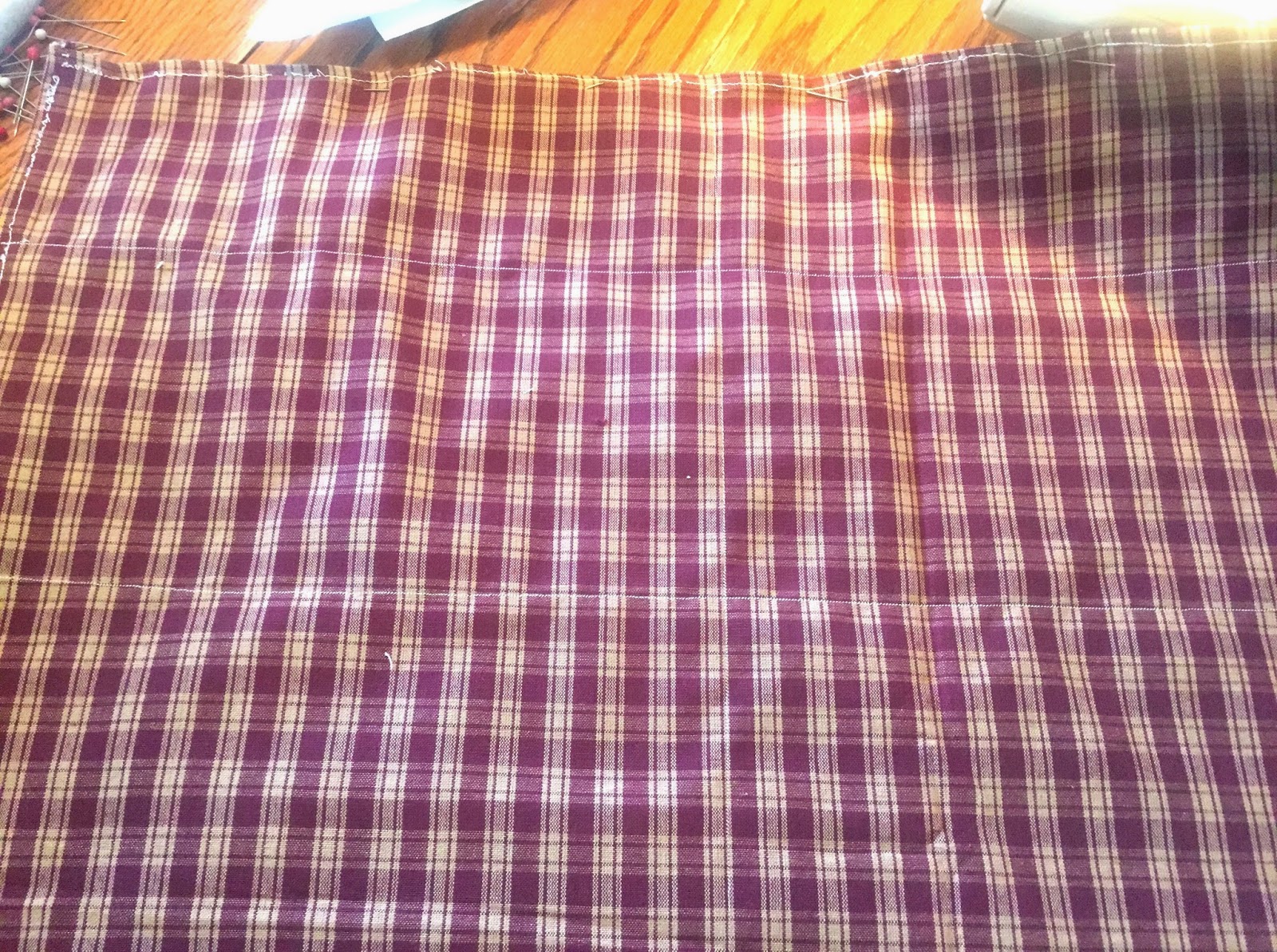 The first thing I did was cut my fabric and then I ironed it because I’ve had it for awhile and it needed it. I also folded the edges down and ironed those all the way around just to make sewing a little easier.